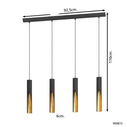 Eglo Pendelleuchte Barbotto Stahl Schwarz, Gold 18W 1380lm - 830 | Geeignet für GU10
