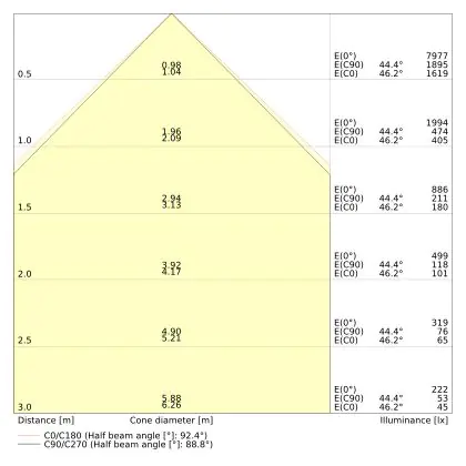 Le code couleur se compose de l'indice de rendu des couleurs (IRC) et de la température de couleur (Kelvin). Le premier chiffre indique le rendu des couleurs (1 = très mauvais rendu des couleurs, 9 = meilleure authenticité des couleurs). Le deuxième et troisième chiffre indiquent la température de la couleur. Exemple : Le code couleur "830" indique que la lampe a un bon rendu des couleurs (8) et une couleur de lumière blanche chaude (30 = 3000K). |