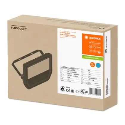 Description Ledvance Projecteur LED GEN 3 Blanc 50W 6000lm 100D - 865 | IP65 - Symétrique - Remplacement 100W