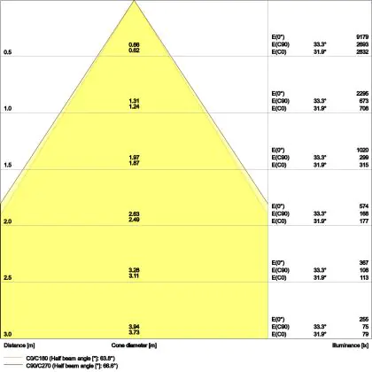 - Angle de diffusion: 65 °