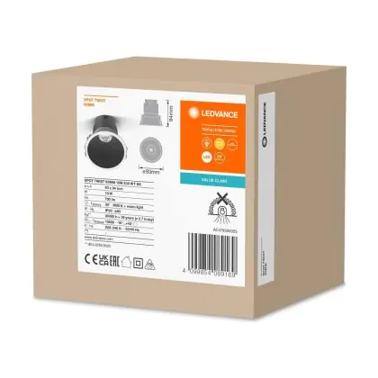 Ledvance Spot LED Twist Pro Aluminium Noir Réflecteur 10W 700lm 30D - 830 | 93mm - Diamètre 85mm - IP20 est un spot LED encastrable. Ce luminaire est conçu pour un éclairage d’accentuation pour un usage domestique ou bien professionnel. LED Intégré, ce spot LED Ledvance en Aluminium a besoin d’une place nécessaire de 85mm de largeur et mm de profondeur. Ce luminaire est compatible avec une ampoule GU10, il est important de faire attention si vous décidez de changer d’ampoule.