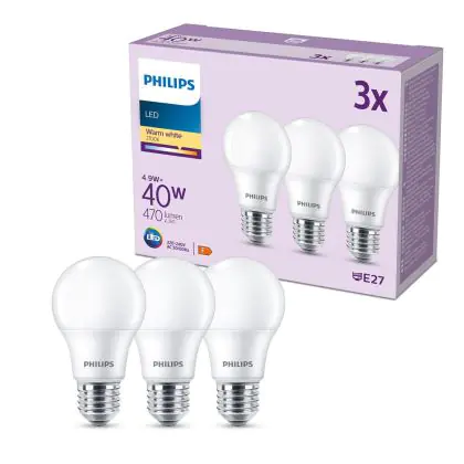 | Nom du fabricant | Box 3 stuks - Philips LED Lamp Mat - 40 W - E27 - Warmwit licht | |