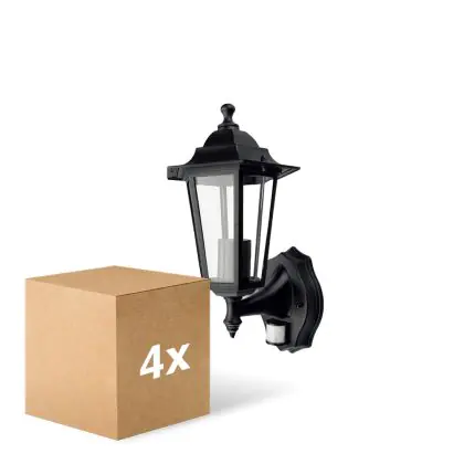 Lot 4x D'Lite Applique Murale Helora Noir | IP44 - Convient pour 1x E27 - Détecteur De Mouvement