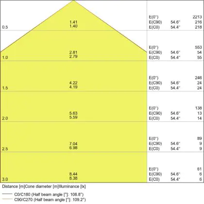 - Angle de diffusion: 120 °