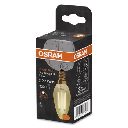 | Nom du fabricant | Vintage 1906 LED CL B FIL GOLD 22 non-dim 2,5W/824 E14 | |